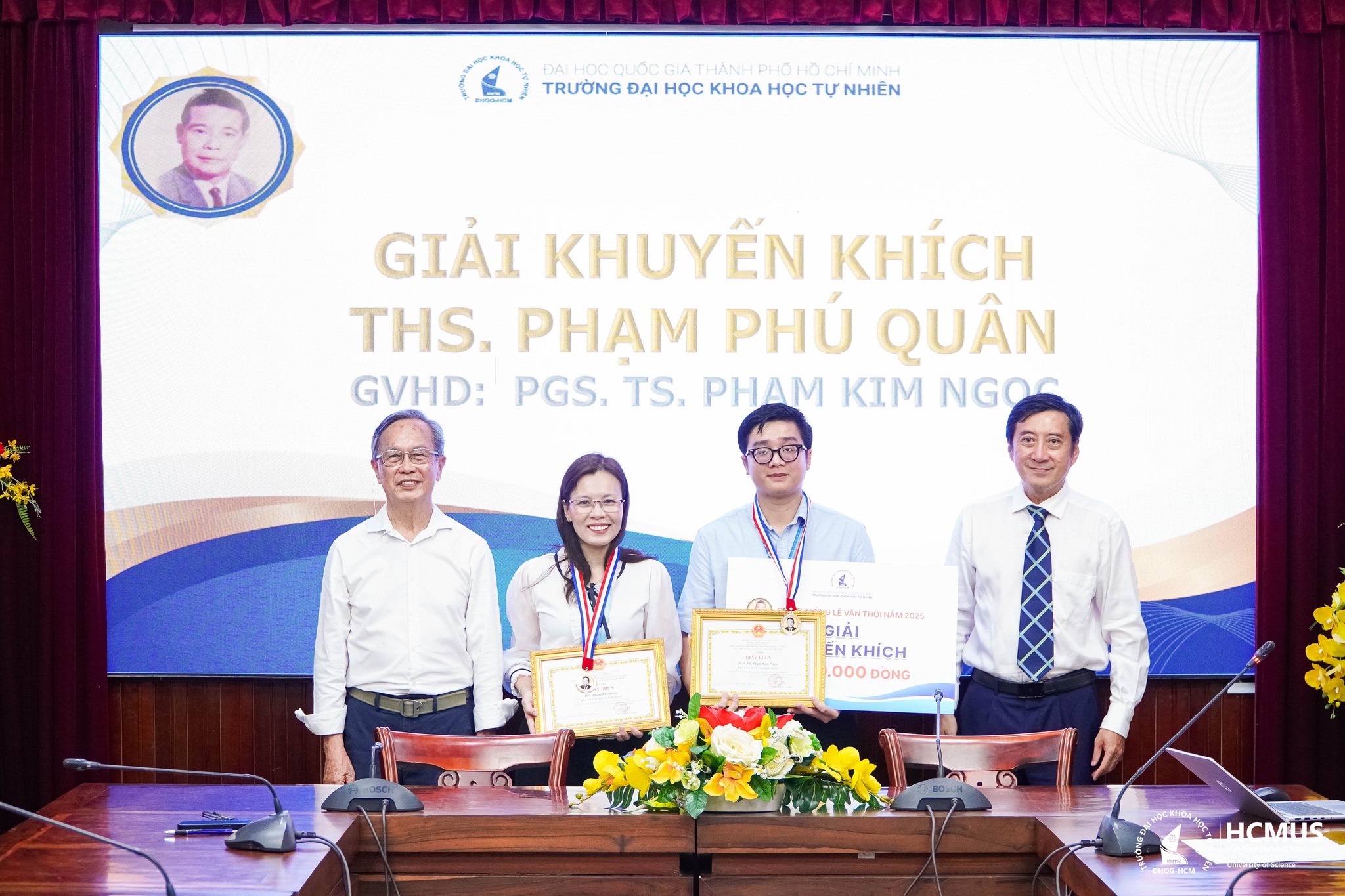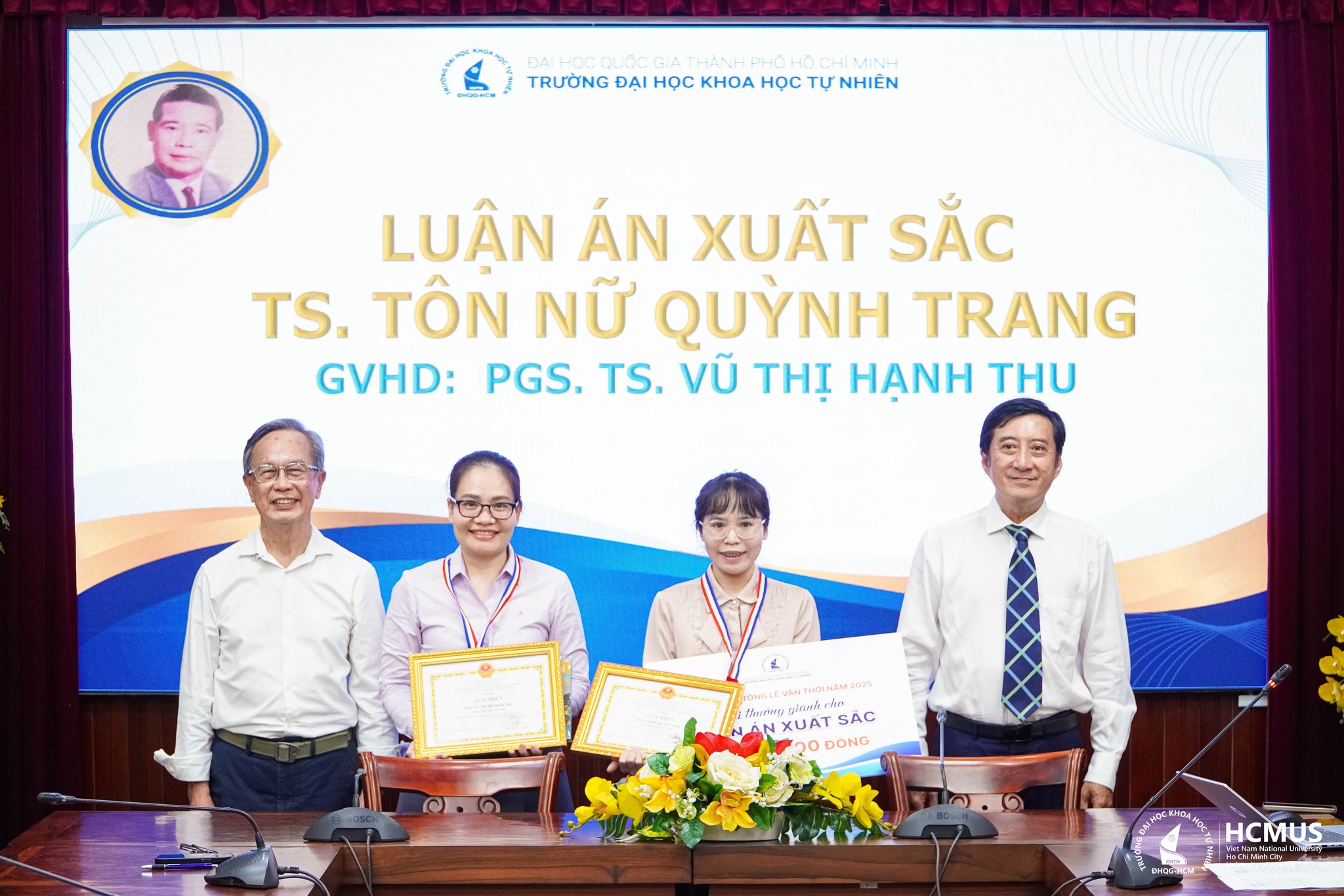 The University additionally acknowledged the pivotal guidance provided by the academic supervisors, including Assoc. Prof. Trần Hoàng Phương (Faculty of Chemistry), Assoc. Prof. Hoàng Thị Đông Quỳ (Faculty of Materials Science and Technology), Assoc. Prof. Vũ Thị Hạnh Thu (Faculty of Physics – Engineering Physics), Prof. Lê Hoài Bắc (Faculty of Information Technology), and Assoc. Prof. Phạm Kim Ngọc (Faculty of Materials Science and Technology).
