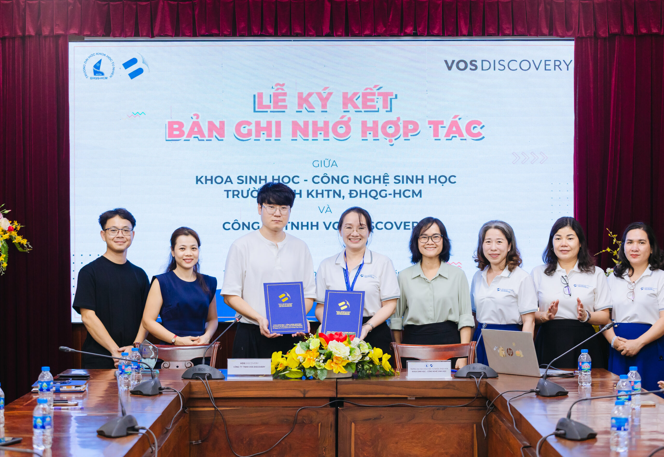 The Faculty of Biology – Biotechnology, VNUHCM-University of Science (HCMUS), has signed Memoranda of Understanding (MoUs) with three enterprises: VOS DISCOVERY Co., Ltd.; SEMIND Joint Stock Company; and TopCV Viet Nam Joint Stock Company.