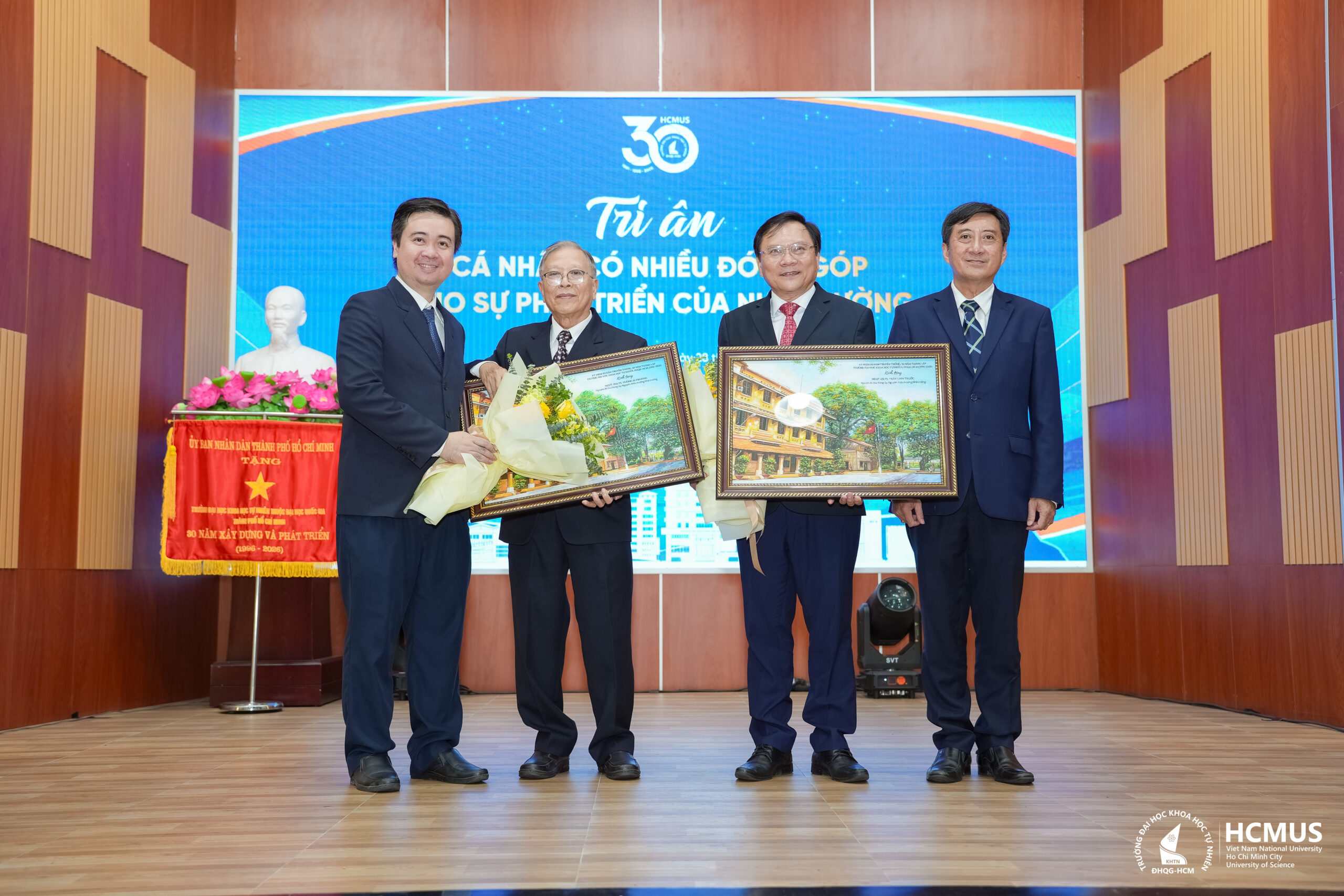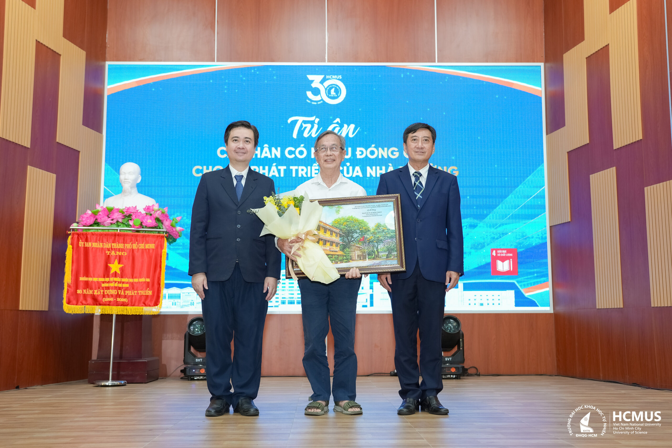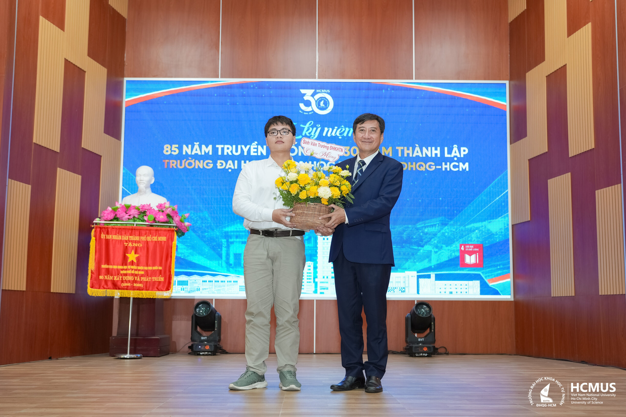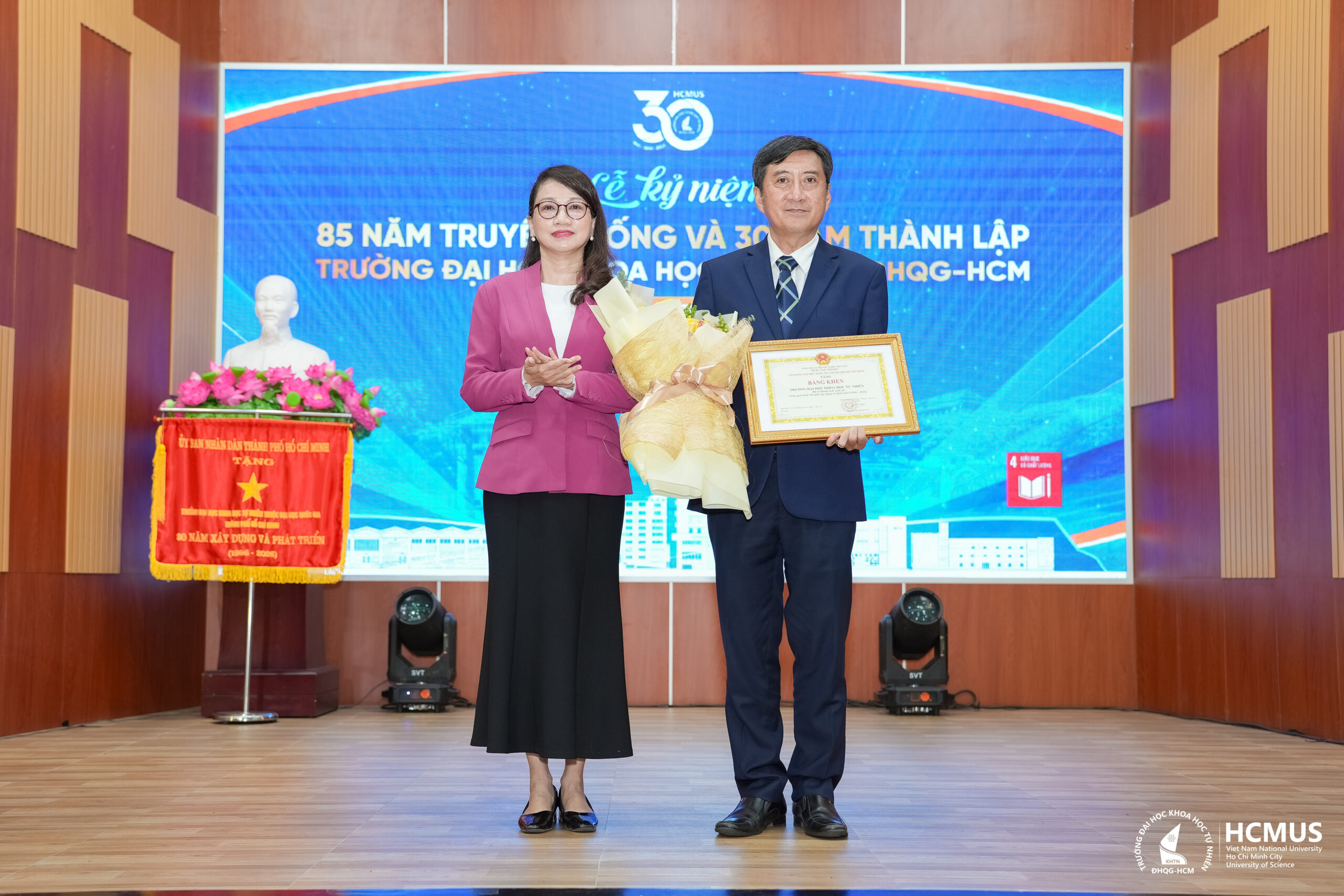 On this occasion, HCMUS was honoured to receive the Traditional Flag from the People’s Committee of Ho Chi Minh City and a Certificate of Merit from VNUHCM, recognising outstanding achievements in education, education, and the advancement of science and technology.