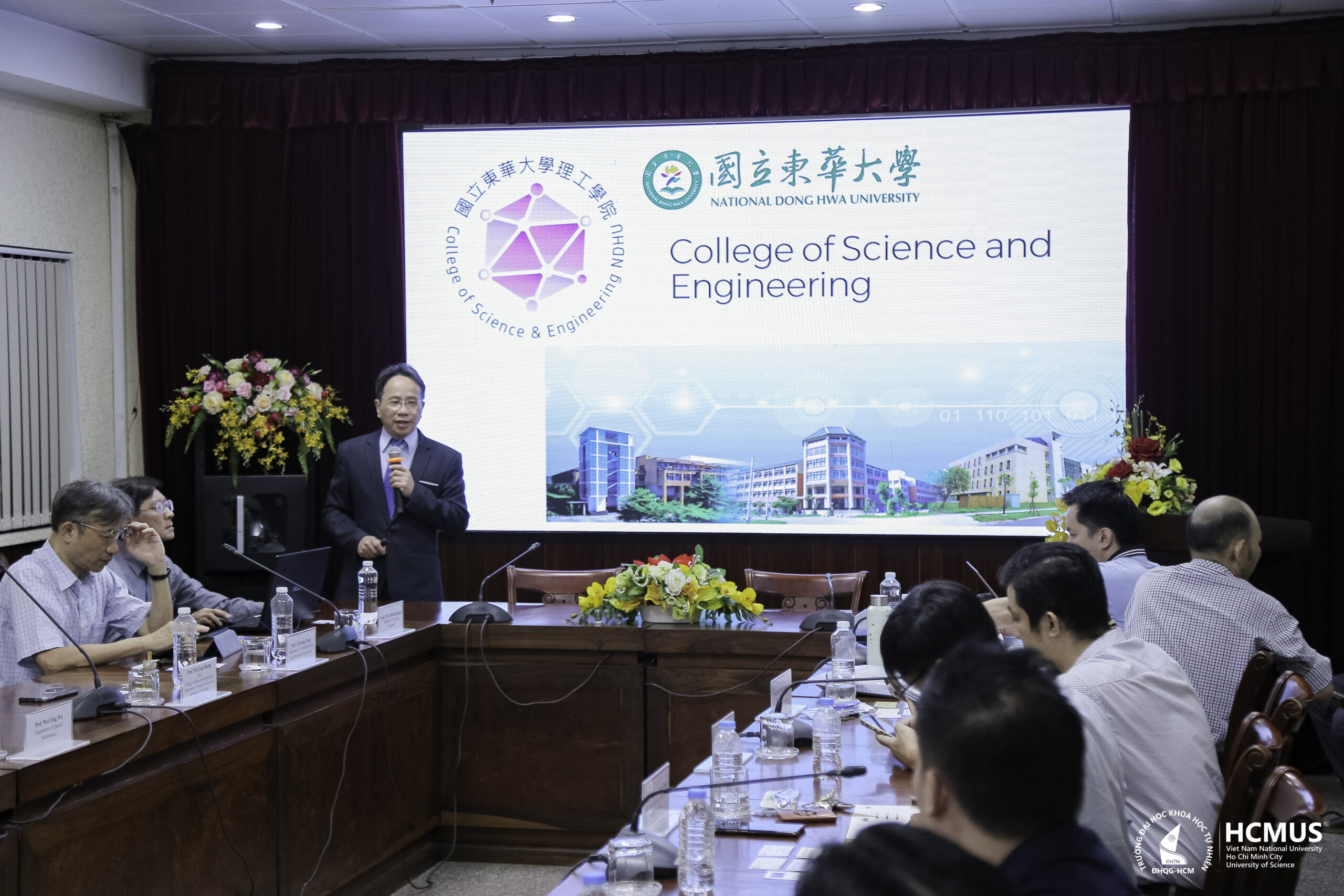 On 15th April, VNUHCM-University of Science hosted a significant meeting with a distinguished delegation from National Dong Hwa University, Taiwan, at the Nguyen Van Cu campus. This event forms part of the university’s continued efforts to expand international cooperation and strengthen ties with academic institutions across the globe, particularly in the fields of science and technology.