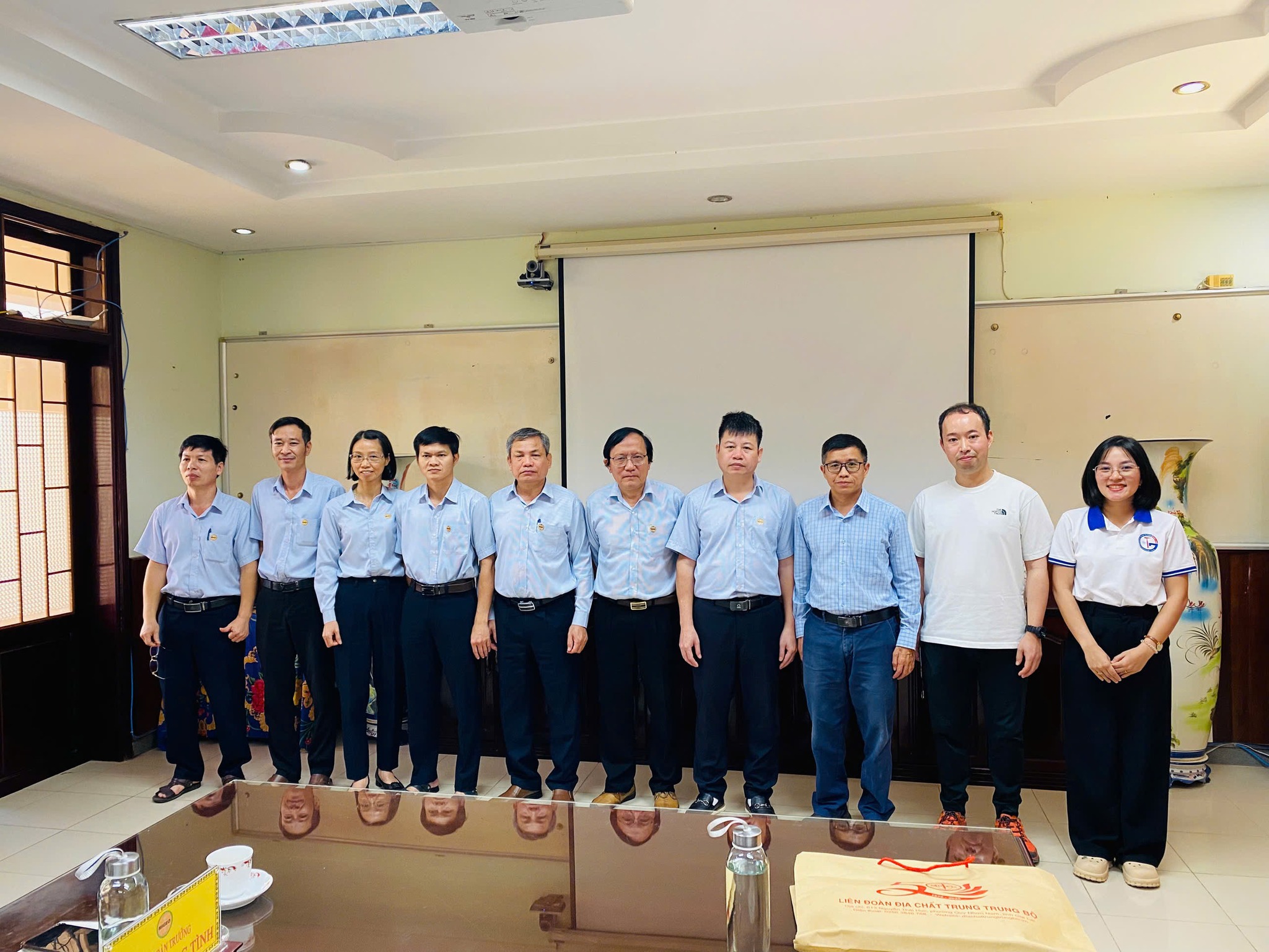 The HCMUS delegation was led by Assoc. Prof. Phạm Trung Hiếu, Dean of the Faculty of Geology, accompanied by researchers Phạm Minh and Nguyễn Thị Trường Giang. Joining the delegation was Assoc. Prof. Kenta Kawaguchi from Hiroshima University (Japan), who is currently engaged in collaborative research with the Faculty. Representing the Central Viet Nam Geological Division were Dr. Dương Ngọc Tình, Division Head; M.Sc. Trần Huynh, Deputy Division Head; M.Sc. Bùi Xuân Kiều, Head of Administration; and M.Sc. Nguyễn Thanh Bình, Head of Laboratory Analysis, alongside various technical and planning department leads.
