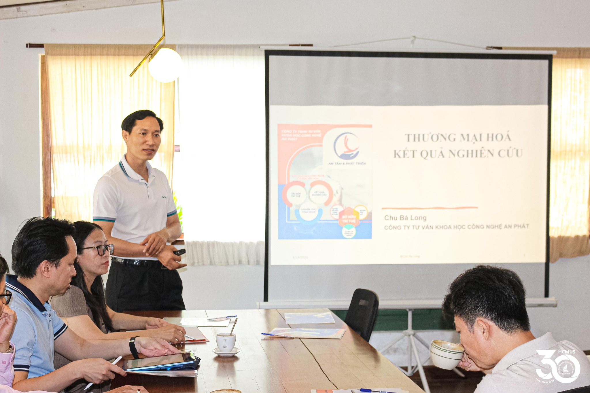 Through a presentation by expert Chu Bá Long, the collaborative model between government agencies, educational institutions, and enterprises was analysed. This model aims to establish a closed-loop value chain encompassing research, development, application, and product commercialisation.