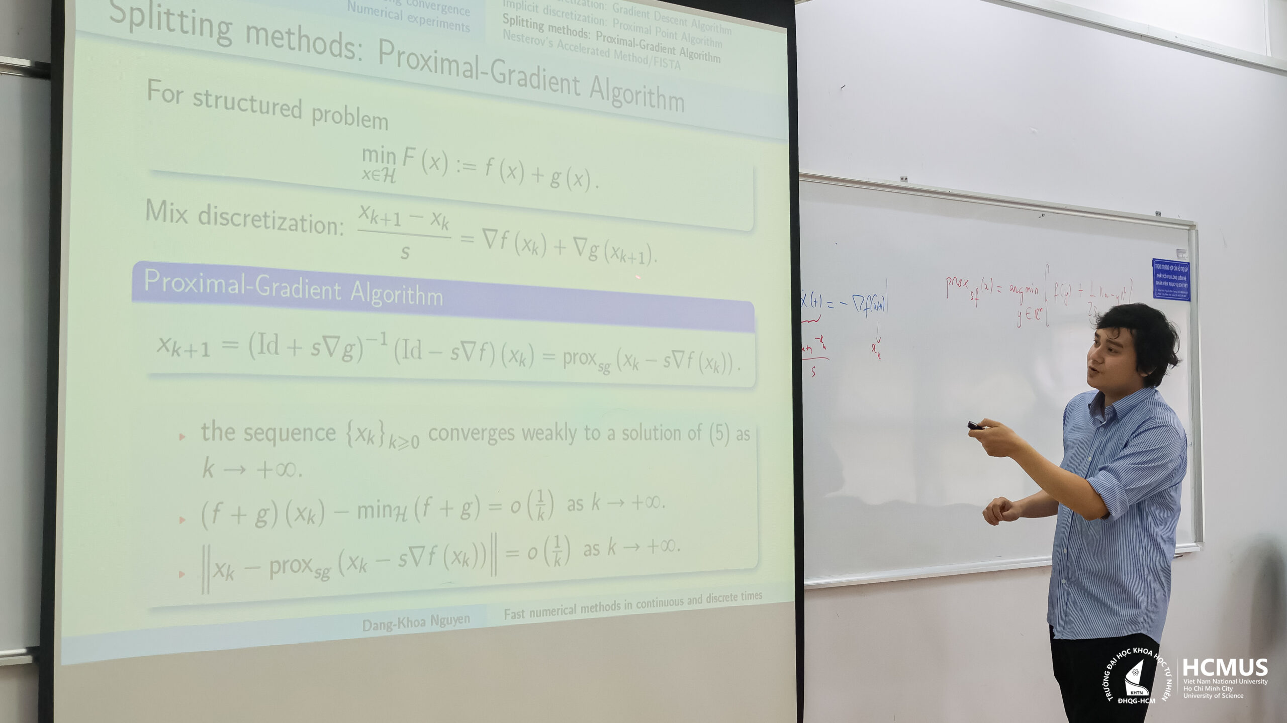 Dr Nguyễn Đăng Khoa (Faculty of Mathematics and Computer Science, VNUHCM-University of Science) introducing fast discrete methods for monotone operators.