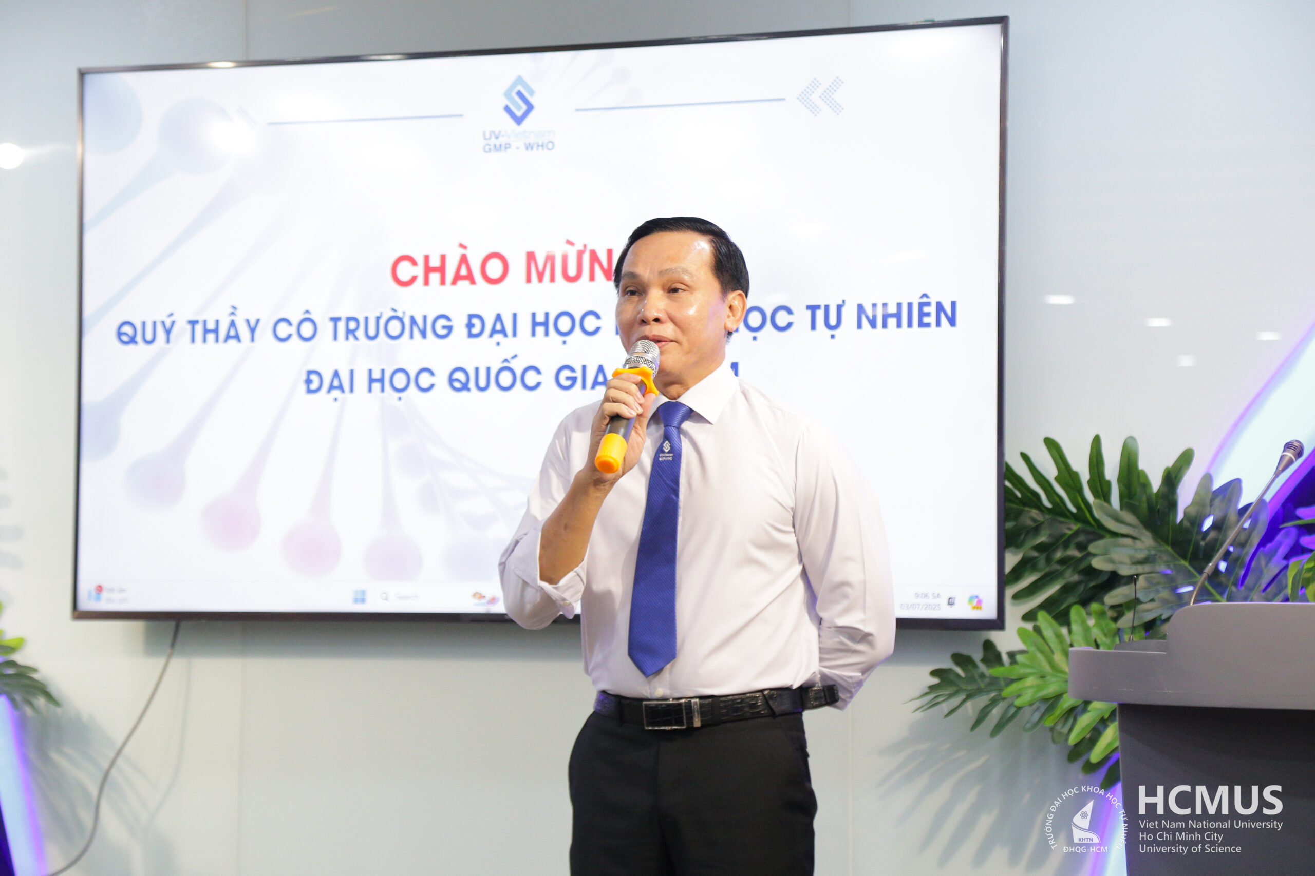Delegates from HCMUS attending the ceremony included Assoc. Prof. Trần Lê Quan – President; Assoc. Prof. Ngô Đại Nghiệp – Head of the Office of External Relations; Prof. Trần Linh Thước – Member of the University Council; Assoc. Prof. Quách Ngô Diễm Phương – Dean of the Faculty of Biology – Biotechnology; Prof. Đặng Thị Phương Thảo – Head of the Molecular Biotechnology Laboratory; alongside academic and administrative staff. Delegates from UV JSC were Mr Trần Thanh Vân – Chairman of the Board, Mr Nguyễn Đăng Khoa – General Director, and executives from the Research and Development Division.