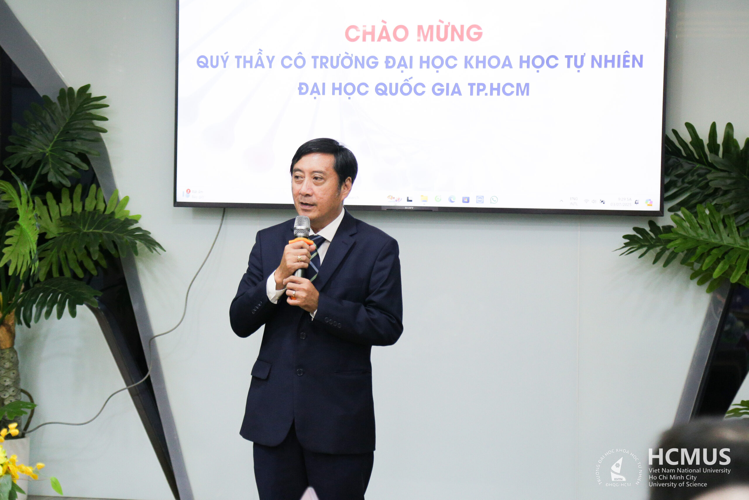 Assoc. Prof. Trần Lê Quan – HCMUS President, delivering remarks at the signing ceremony, highlighting the university’s commitment to applied research in collaboration with industry.