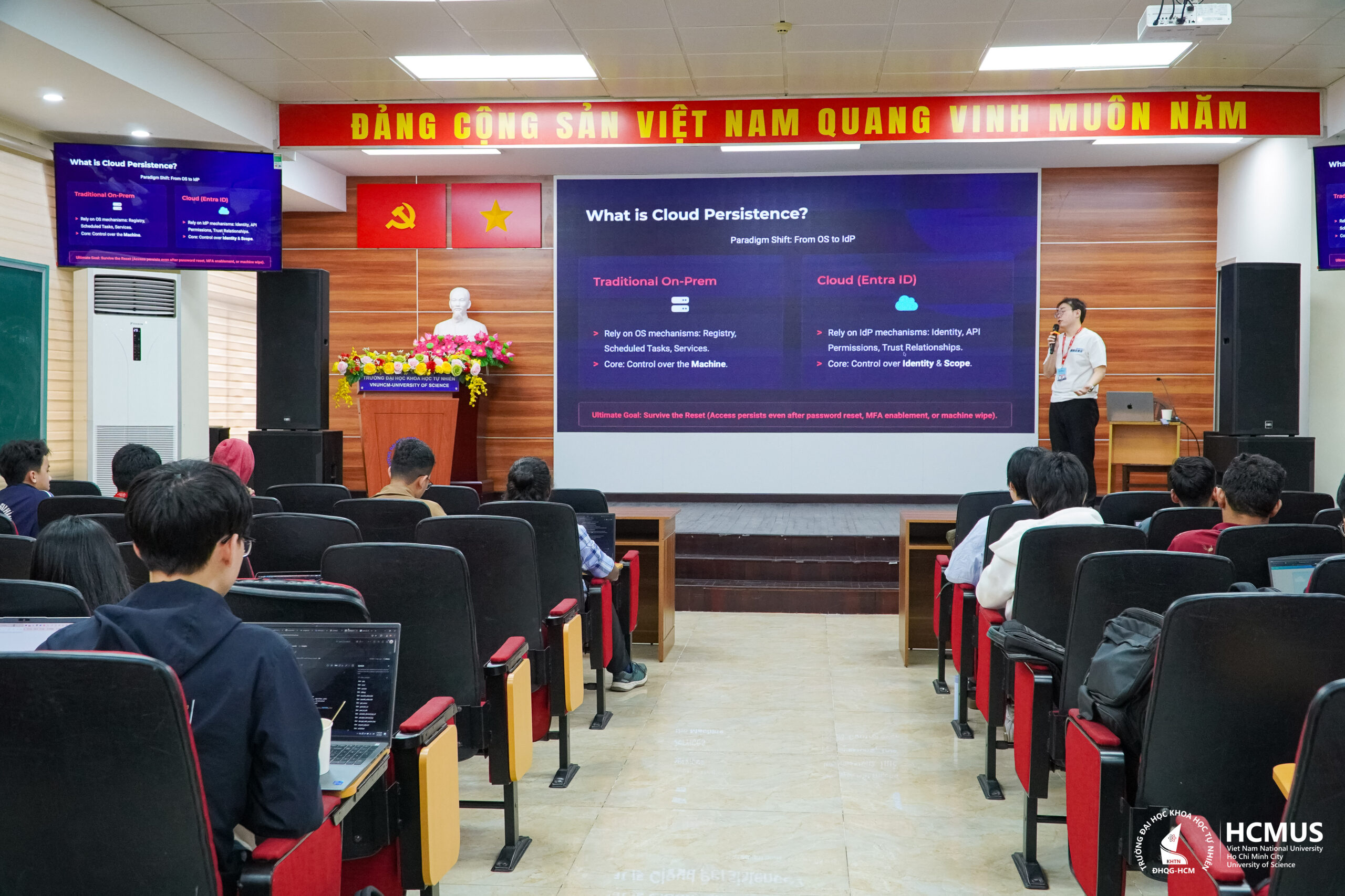 On 5 March, scholars attended the course “Born in the Cloud, Breached from On-Prem: Entra ID Attack Chains”, taught by Jimmy Su (Jiun-Ming Su) – Cyber Security Researcher at CyCraft specialising in identity security and Active Directory/Cloud attacks – and John Jiang (Shang-De Jiang) – Deputy Director of the research team at CyCraft, Expert in Incident Response and Endpoint Security. The session focused on identity-based attack scenarios within cloud environments, specifically examining token exploitation and lateral movement techniques within the Microsoft Entra ID ecosystem.