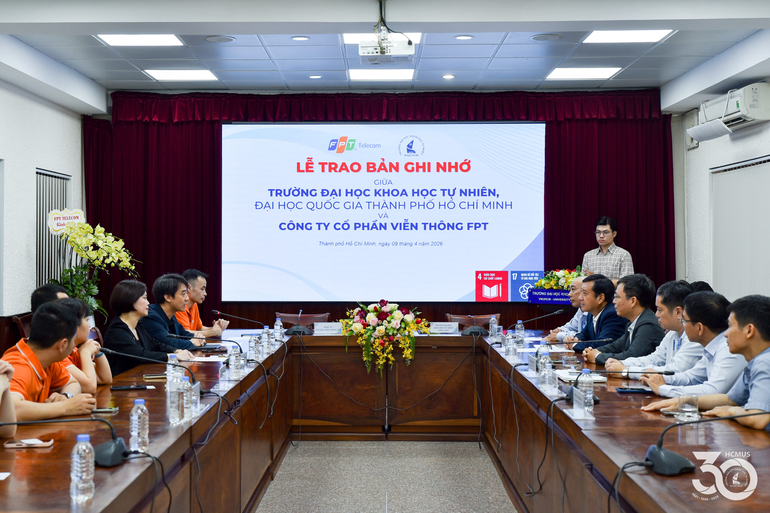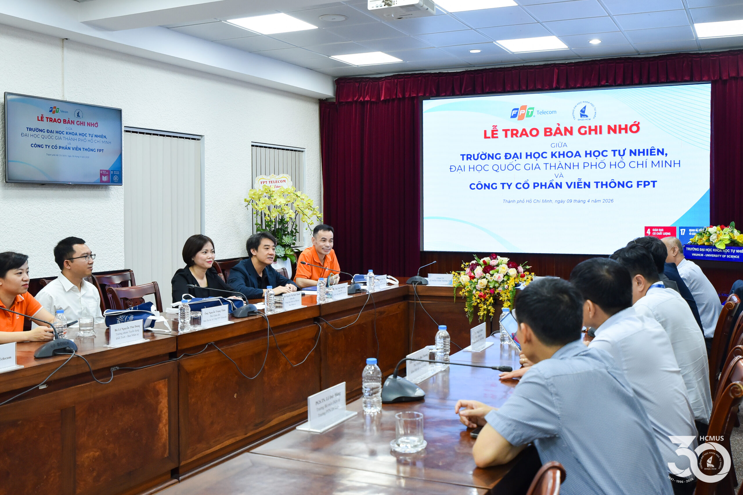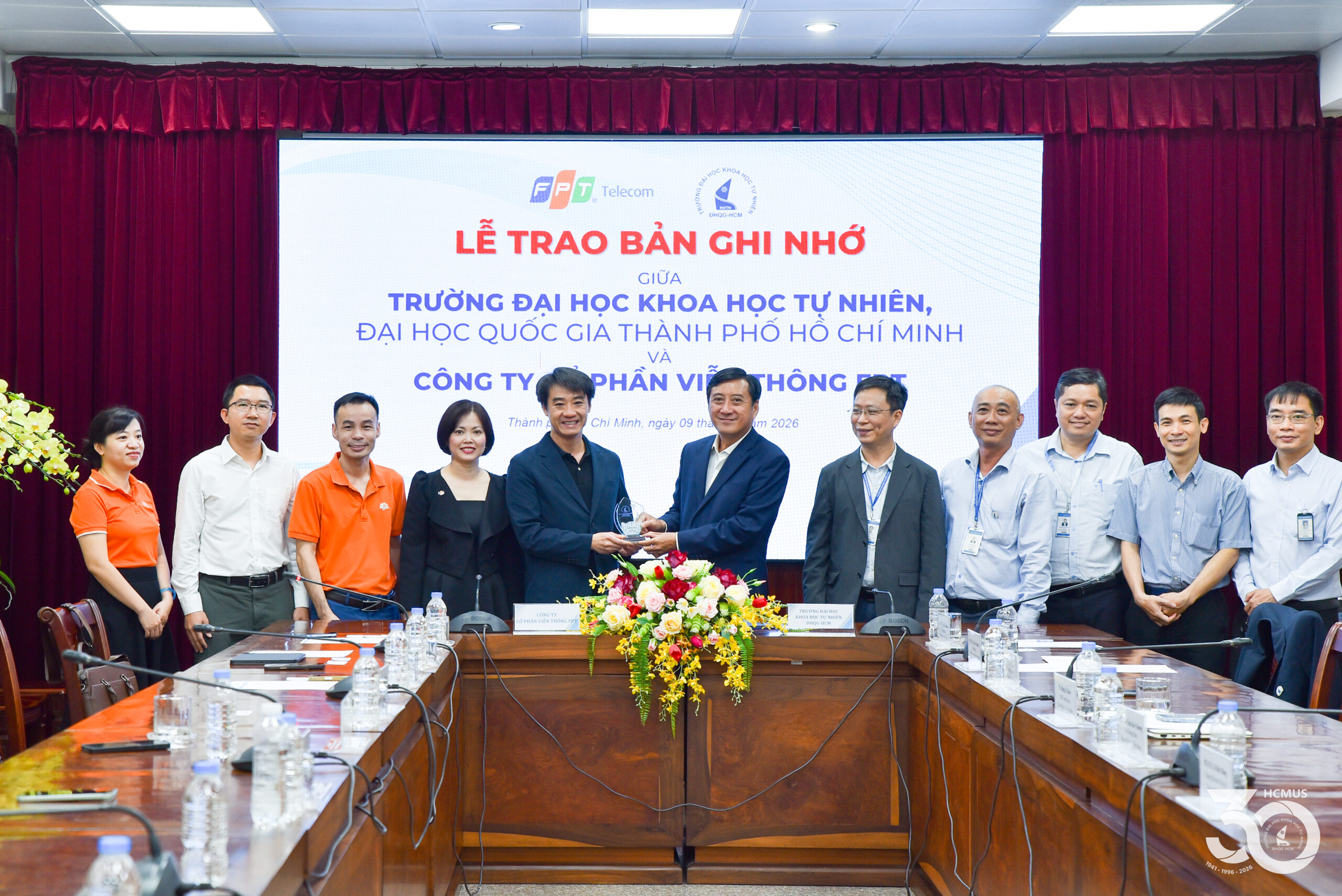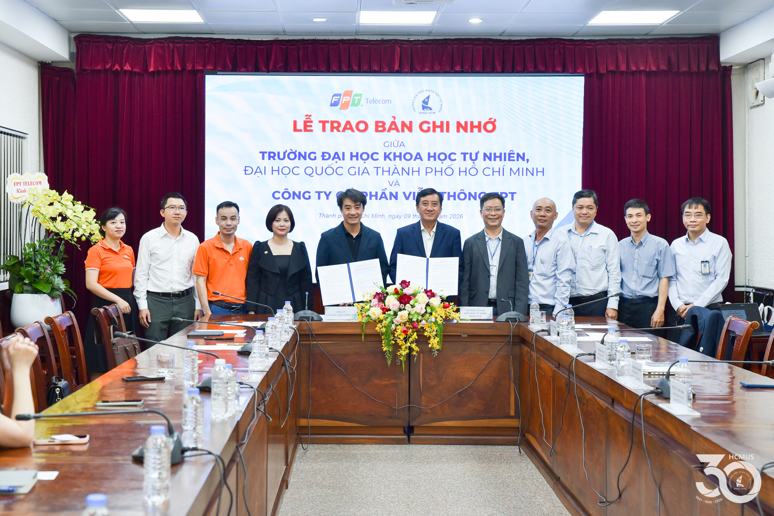 On 9 April, VNUHCM-University of Science (HCMUS) and FPT Telecom held a formal signing ceremony for a Memorandum of Understanding (MoU). This agreement establishes a framework for academic collaboration, student support initiatives, and joint scientific research, with a specific focus on Electronics and Telecommunications Engineering and Semiconductor Design.