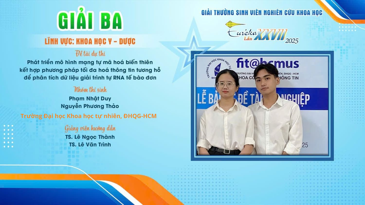 Such achievements at Euréka 2025 once again affirm the research capabilities of HCMUS students, whilst simultaneously demonstrating the efficacy of an academically rich training environment and clear research orientation. These outcomes contribute to consolidating the standing of the University in youth training and scientific research, continuing to spread the spirit of discovery and creativity within the student community.