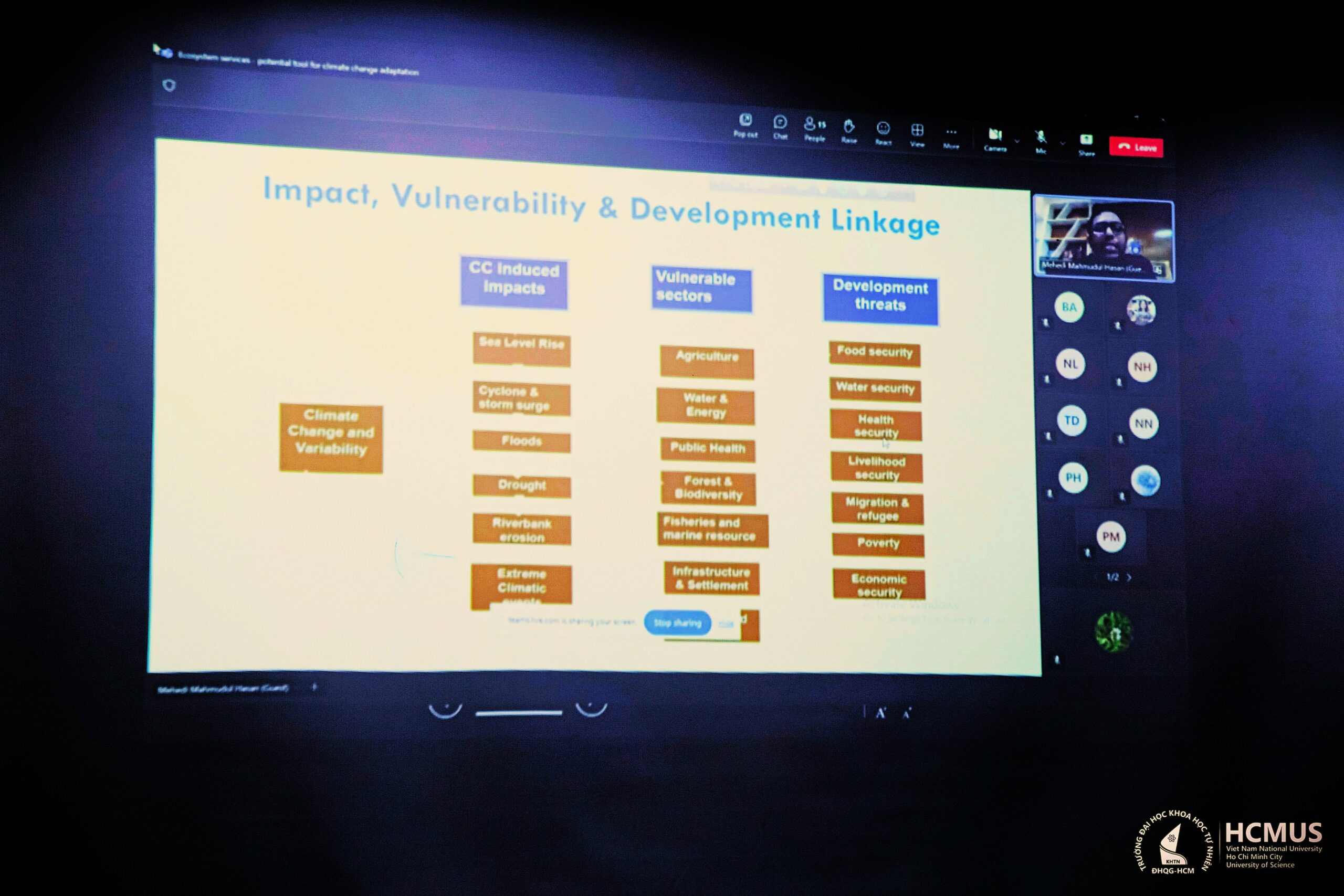 Prof. Mehedi Mahmudul Hasan (Bangladesh) delivering a presentation via Zoom on coastal livelihoods and the impacts of climate change on the fisheries sector.