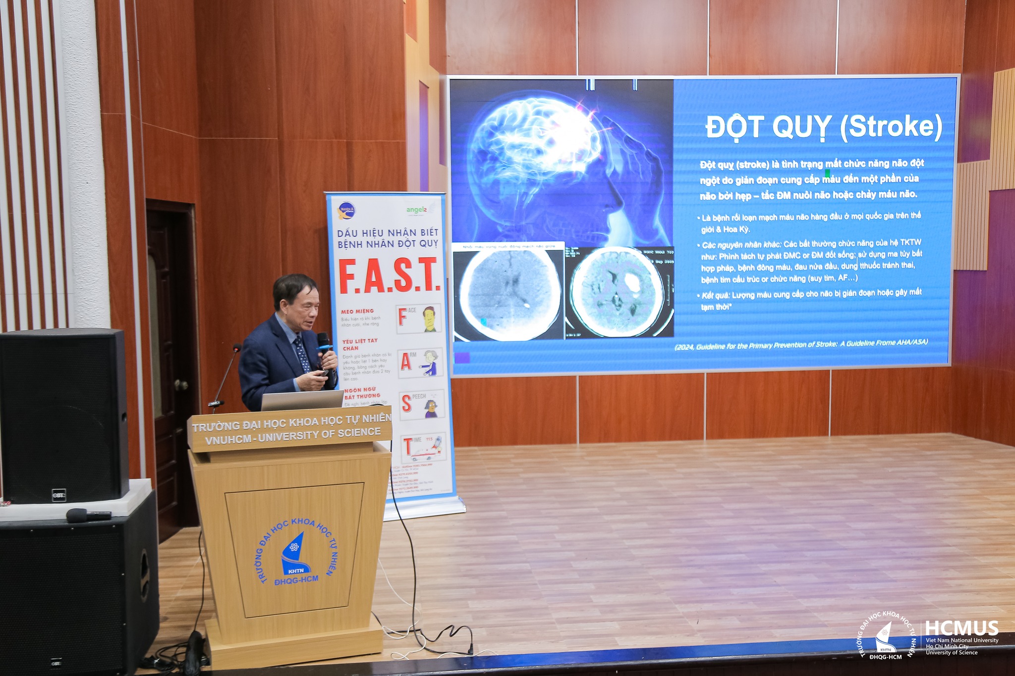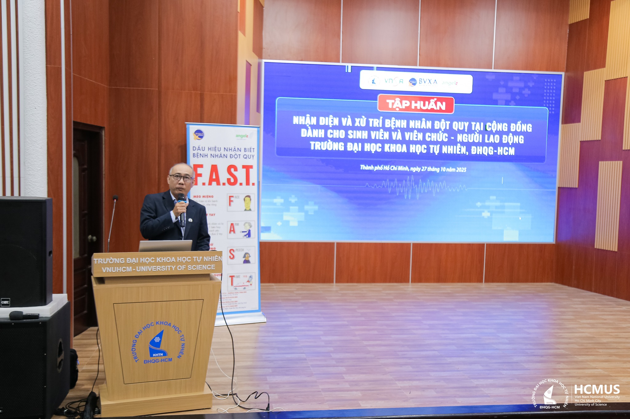 On 27 October, VNUHCM-University of Science (HCMUS), in collaboration with the Viet Nam Stroke Association, Xuyen A General Hospital Ho Chi Minh City, and the Angels Programme (Boehringer Ingelheim Viet Nam), convened a specialized training session titled ‘Recognising and Managing Stroke Patients in the Community.’ This initiative aims to bolster initial medical response capabilities among staff and students whilst promoting proactive prevention awareness within the academic sphere.