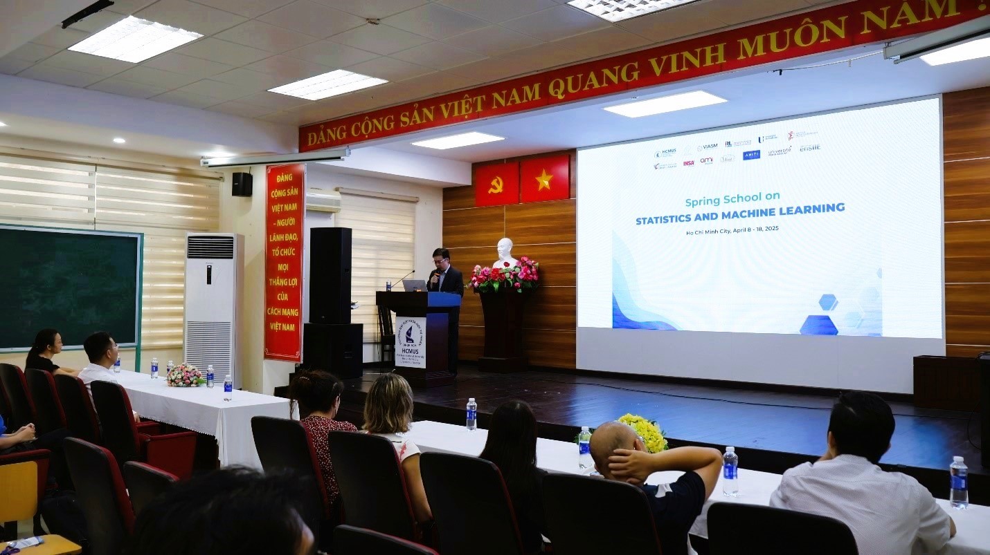 On the morning of 8 April, the Spring School on Statistics and Machine Learning 2025 officially commenced at VNUHCM-University of Science. This intensive international academic programme is co-organised by the University in collaboration with the Viet Nam Institute for Advanced Study in Mathematics (VIASM), under the framework of the National Key Programme for the Development of Mathematics for the period 2021–2030. Featuring lectures by international experts from two renowned French institutions—the University of Toulouse and the University of Paris-Saclay & ENSIIE—the programme marks a significant milestone in the University’s strategy for the internationalisation of education, promoting academic cooperation and the development of high-quality human resources in applied data science in Viet Nam.