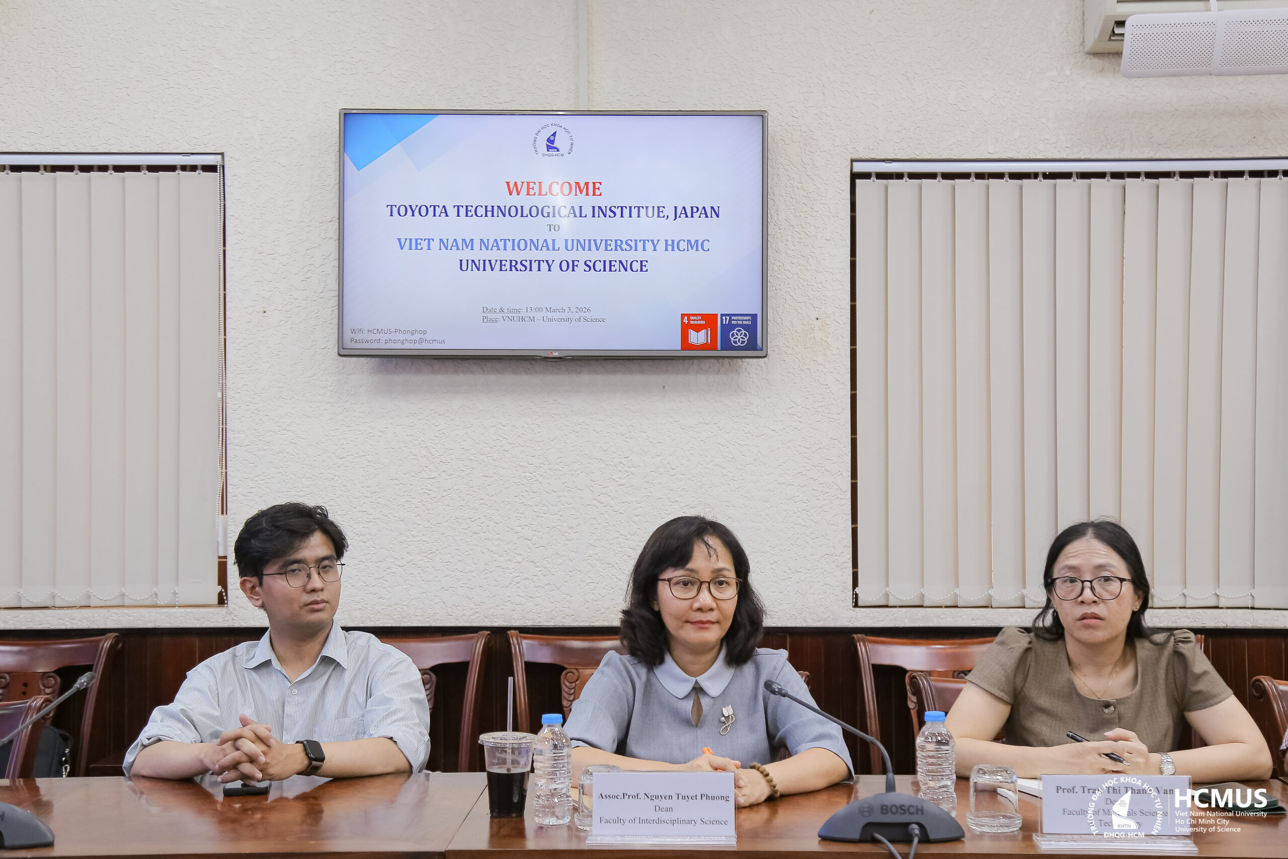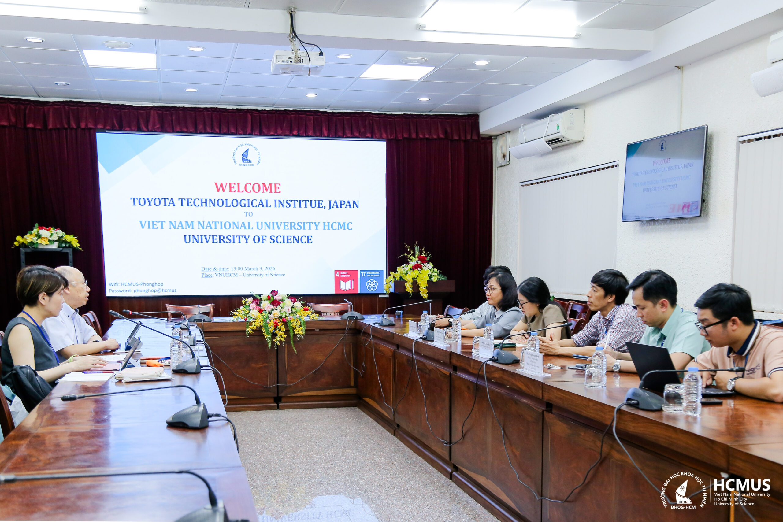 On 3 March 2026, at the Nguyen Van Cu campus, VNUHCM–University of Science (HCMUS) welcomed and held a working session with a delegation from the Toyota Technological Institute (TTI, Japan). The meeting focused on exchanging strategic directions for cooperation in education, research, and academic exchange programmes between the two institutions in the coming period.