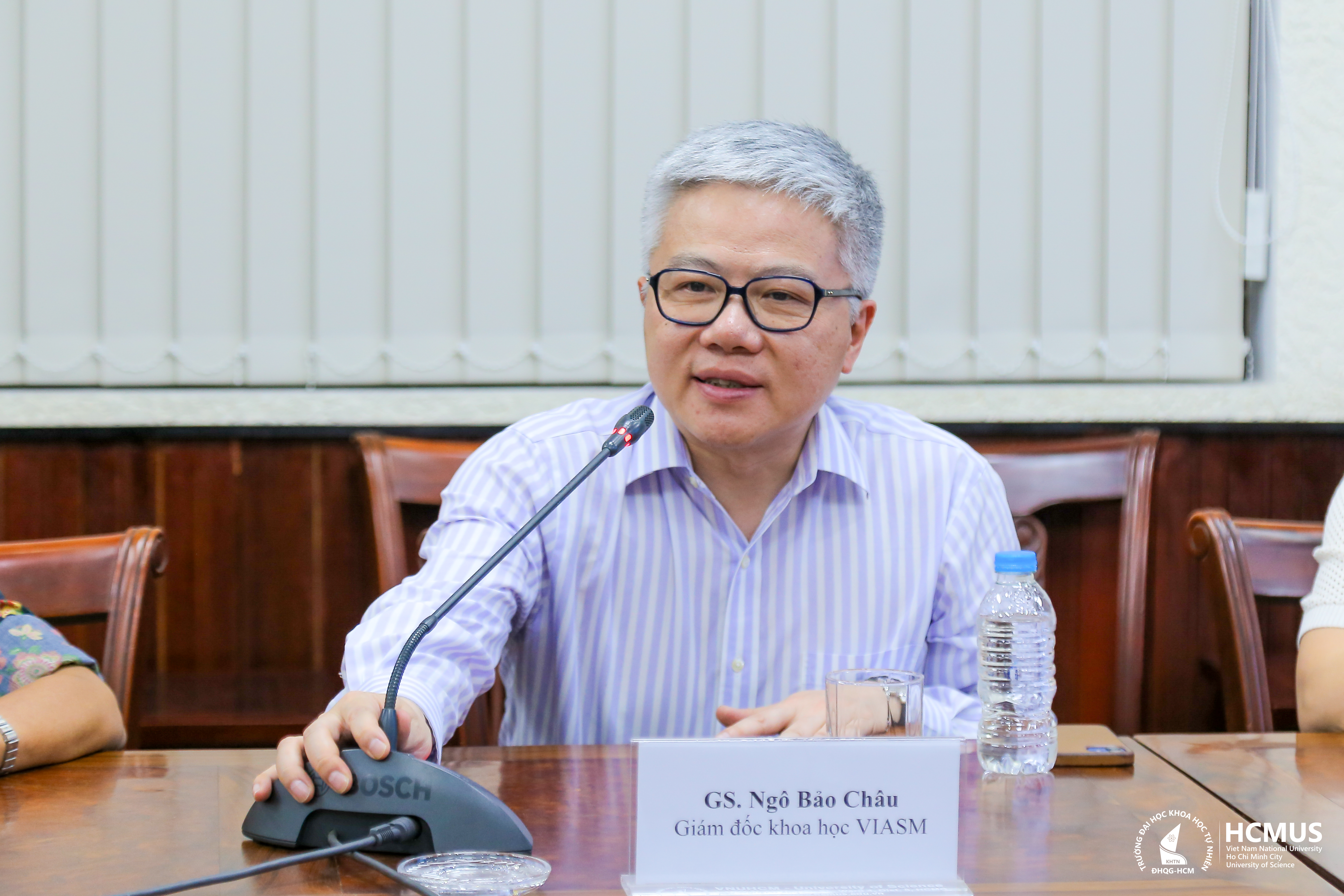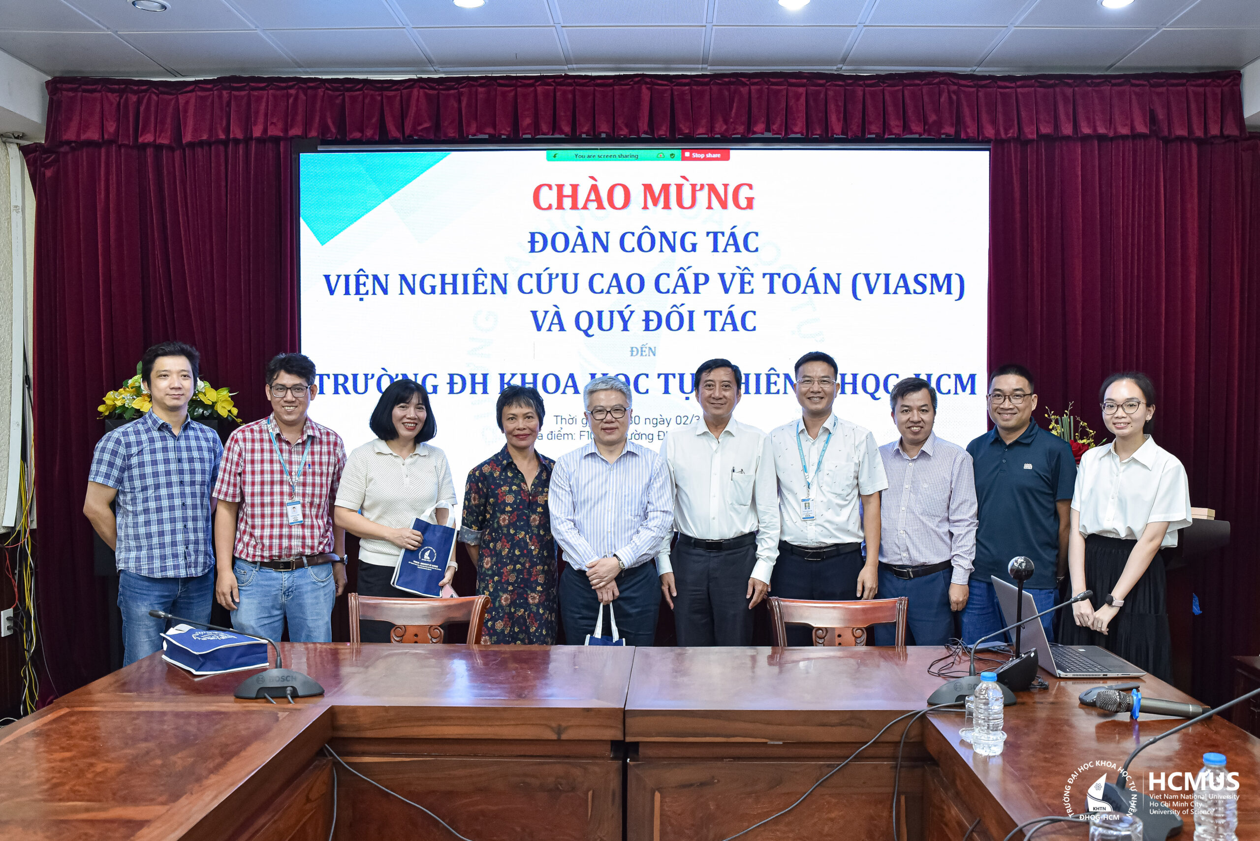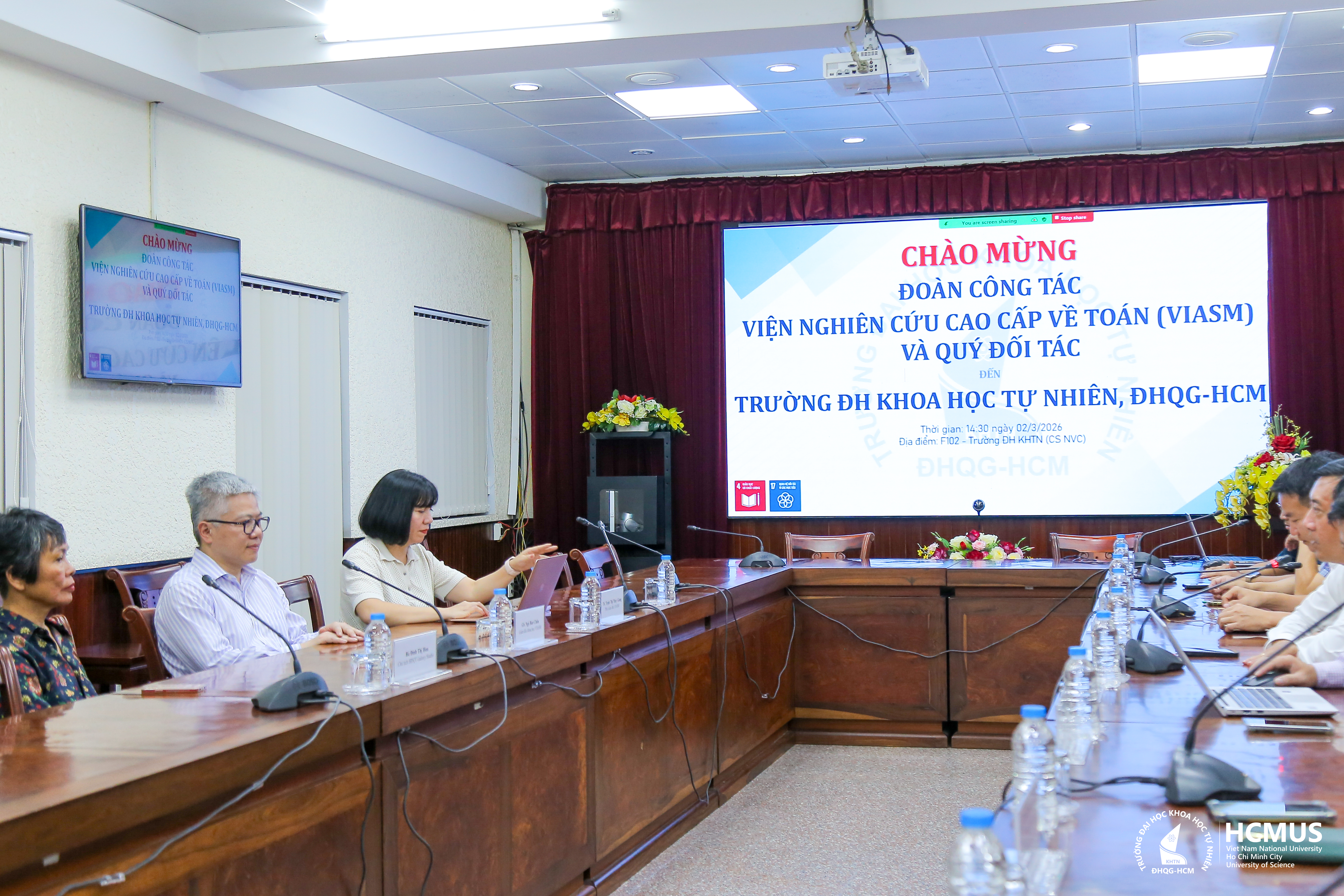 On 2nd March 2026, VNUHCM–University of Science (HCMUS) received and worked with a delegation from the Viet Nam Institute for Advanced Study in Mathematics (VIASM) and strategic partners, to discuss collaborative orientations in education and fostering mathematical talent.